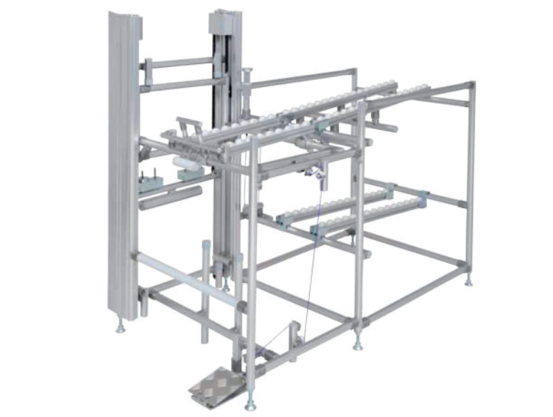 通過精極科技為此專項定制研發(fā)的LCIA低成本自動化解決方案,可實現(xiàn):1)電機絲桿升降,保證物料拿取和空盤回收都在固定高度,節(jié)省員工的疲勞強度;2)利用滑輪、重力和彈簧,使回盤端無動力升降,降低制作成本;3)空盤回收最近化,減少員工的走動和轉(zhuǎn)身,達到空盤便利化。