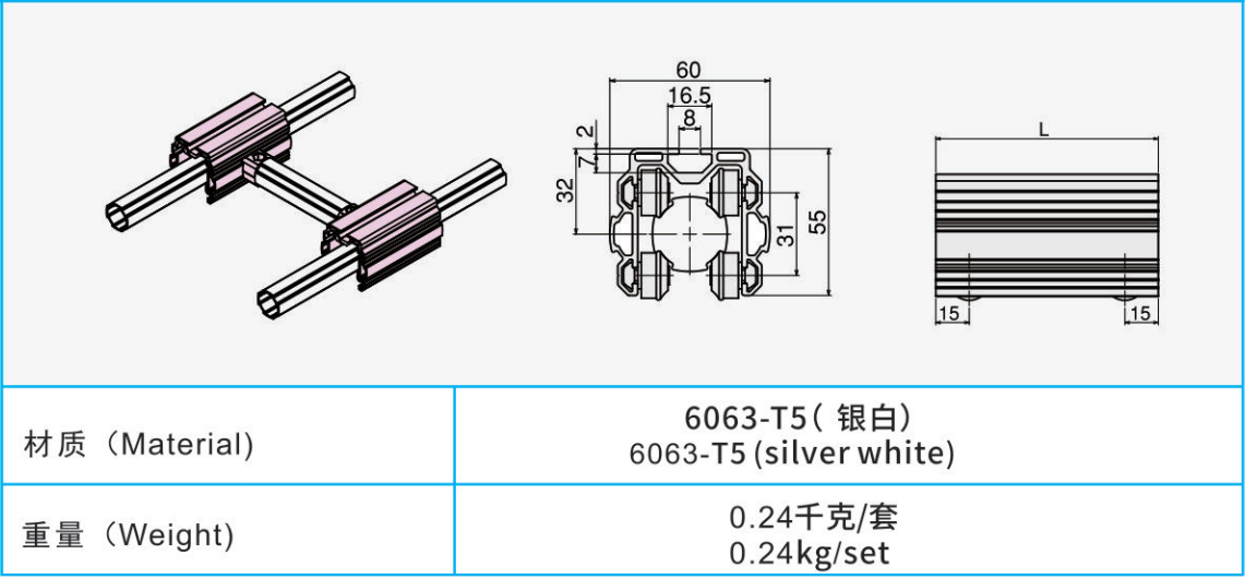 材質(zhì):6063-T5(銀白)